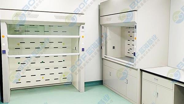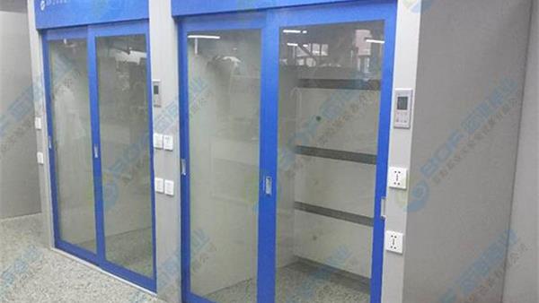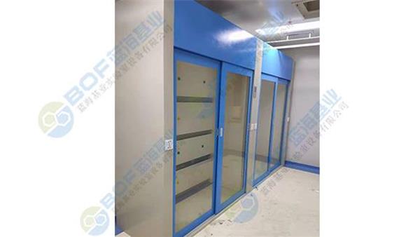 A、上部排氣柜:采用頂吸式抽氣管道,內(nèi)部分三段式排風設(shè)計,以抽掉不同比重的各類有毒氣體